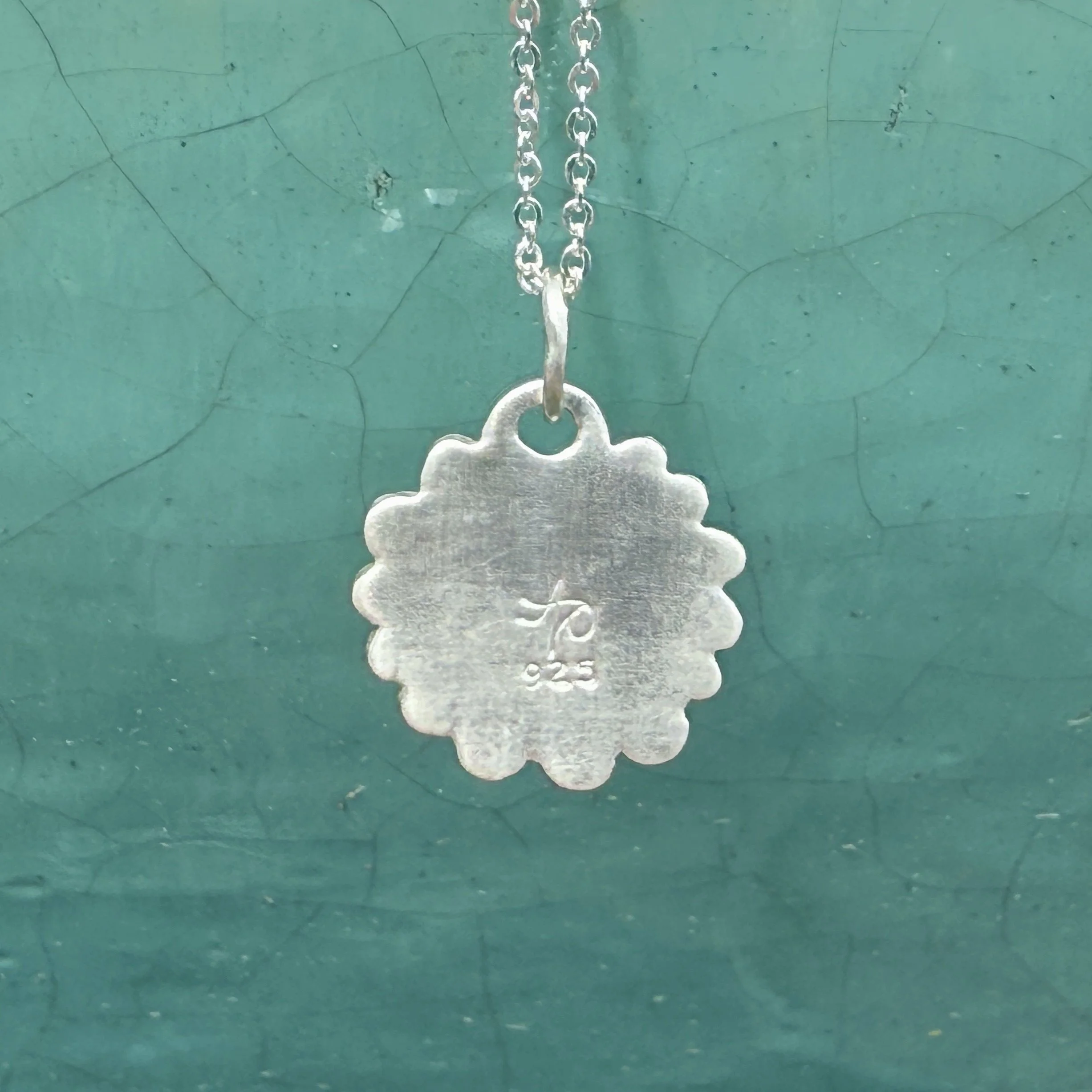 Set in sterling silver with an 18” sterling silver chain.